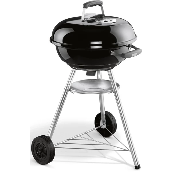 Der Weber Holzkohlegrill Compact Kettle ist der optimale Grill für den Einsteiger, Holzkohle-Fans oder für unterwegs. Dank des Deckelgriffs mit Hitzeschutz kann man den Deckel einfach abnehmen und am Kessel arretieren. 3 Lüftungsschieber sorgen dabei für die optimale Luftzufuhr. Der Grillrost ist verchromt und der Deckel samt Kessel sind porzellanemailliert. Die Ascheschale ist aus rostfreiem Aluminium und die Räder bruch- sowie wetterfest. Das preiswerte Einstiegsmodell Compact Kettle überzeugt mit allen Qualitäts- und Sicherheitsmerkmalen eines Weber Grills.Art.-Nr.: 1500261
