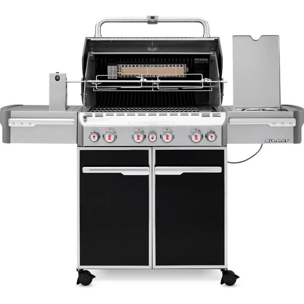 Der Weber Gasgrill Summit E-470 GBS ist eine voll ausgestattete Outdoor-Küche für echten Grillgeschmack. Seine Grillfläche wird von 4 Edelstahl-Hauptbrennern und einem Infrarot-Heckbrenner beheizt. Außerdem zählen zu seinen Ausstattungsmerkmalen die Searing Zone, eine integrierte Räucherbox und ein Drehspieß mit leistungsstarkem Elektromotor. Der Gourmet BBQ System-Grillrost aus 9mm Edelstahl bietet mit seinen zahlreichen optional erhältlichen Grilleinsätzen wie z.B. dem Pizzastein oder dem Wok ungeahnte Möglichkeiten. Das Drehspießsystem Tuck-Away mit Motor zum Hochklappen und separater Aufbewahrung von Spieß und Gabel lässt sich bei Nichtgebrauch platzsparend wieder einklappen. Mit dem Summit E-470 GBS ist vom perfekten Steak bis zum saftigem Spießbraten mit knuspriger Kruste alles möglich. Mit den Snap-Jet Zündern für die getrennt regelbaren Edelstahlbrenner, dem Seitenkocher für Beilagen und dem Grifflicht hat man stets den Überblick und die Kontrolle.Art.-Nr.: 1600865