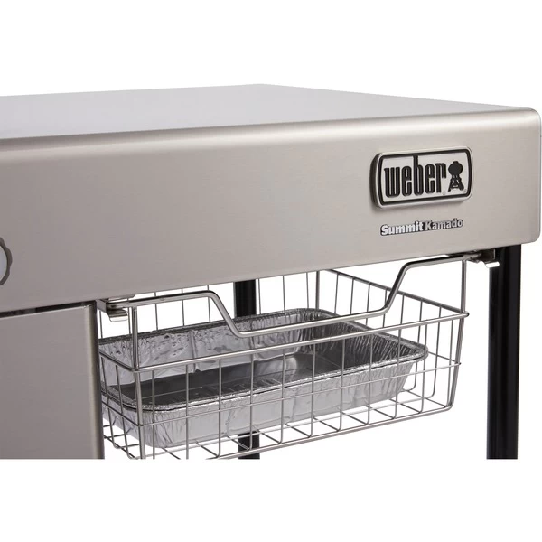 Das Holzkohlegrill-Center Summit Kamado S6 von Weber aus langlebigem, doppelwandig isoliertem Stahl erreicht schnell die gewünschten Temperaturen, hält die Hitze konstant, und dank des Snap-Jet Gas-Anzündsystems ist das Anfeuern der Holzkohle extrem einfach auf Knopfdruck. Damit eignet er sich für ganztägiges Räuchern, während gleichzeitig die benötigte Holzkohlemenge minimiert wird. Mit der besonders großen Grillfläche von 61cm Durchmesser kann man mit dem Summit Kamado auf jedem Fest auch für viele Gäste grillen. Durch einfaches Umsetzen des Grillrosts kann man den Kamado in einen normalen Holzkohlegrill verwandeln, um Steaks anzubraten, Hähnchen zu grillen oder Fisch zu räuchern. Der 2-fach verstellbare Holzkohlerost ist ideal zum Räuchern oder Anbraten bei hoher Hitze. Der Deckellüfter Rapidfire fördert dabei den Luftstrom, um schnell eine hohe Hitze zu erreichen. Der Summit Kamado S6 ist mit dem integrierten Gourmet BBQ System ausgestattet, mit den unterschiedlichen separat erhältlichen Einsätzen kann man seiner Phantasie beim Grillen freien Lauf lassen. Der offene Grillwagen mit Edelstahl-Seitentisch, Korbschublade und großer Gitter-Ablage bietet jede menge Stauraum für Grillbestecke und Zutaten. Das One-Touch-Reinigungssystem ermöglicht nach dem Essen ein problemloses Säubern des Grills. Die Stahlkonstruktion und die porzellanemaillierte Beschichtung sorgen für eine besonders lange Haltbarkeit.Art.-Nr.: 1694185