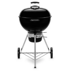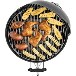 Der Kugelgrill Weber Original Kettle E-5730 wurde mit neuen Merkmalen und Funktionen wie einer Räuchereinstellung zum Garen bei niedrigen Temperaturen, dem One-Touch-Reinigungssystem mit großem Ascheauffangbehälter und integrierten Besteckhaken am Griff nun weiter optimiert. Er eignet sich für das direkte und indirekte Grillvergnügen. Mit seiner einfachen Handhabung und Pflege, seinen Sicherheits- sowie Ausstattungsmerkmalen lässt der One-Touch Original Kettle keine Wünsche mehr offen. Das One-Touch-System ermöglicht in Verbindung mit dem Lüftungsschieber im Deckel eine sehr gute Temperatur- und Umluftsteuerung im Kessel, die das lästige Verstellen des Grillrostes in der Höhe vollkommen überflüssig macht.Art.-Nr.: 1500278