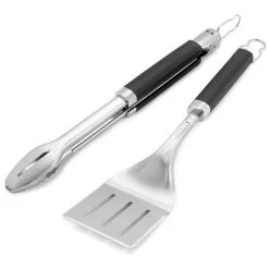Mit dem Weber Premium Grillbesteck-Set 6763 gelingt jedes Grillabenteuer mühelos. Die weichen Antirutsch-Griffe sorgen für sicheren Halt. Mit dem Premium Wender kann man saftige Burger mühelos wenden und leicht vom Grillrost auf die Teller bringen. Die Premium Grillzange bietet vielseitige Einsatzmöglichkeiten: Zum Grillgut auflegen, Hotdogs wenden, um geschnittenes Gemüse zu verteilen und sogar zum Bewegen großer Braten. Die lange Grillzange kann, wenn’s mal sein muss, sogar die Holzkohle neu anordnen und hält die Hände fern von der Hitze.Art.-Nr.: 1694202