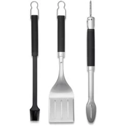 Mit dem Weber Premium Grillbesteck-Set 6764 gelingt jedes Grillabenteuer mühelos. Die weichen Antirutsch-Griffe sorgen für sicheren Halt. Mit dem Grillpinsel kann man gleichmäßig Öl, Marinaden oder großzügige Saucenmengen auf dem Grillgut verteilen und dabei gründlich jeden Millimeter bedecken. Die Silikonborsten sind beständig und leicht zu reinigen. Mit dem Premium Wender kann man saftige Burger mühelos wenden und leicht vom Grillrost auf die Teller bringen. Die Premium Grillzange bietet vielseitige Einsatzmöglichkeiten: Zum Grillgut auflegen, Hotdogs wenden, um geschnittenes Gemüse zu verteilen und sogar zum Bewegen großer Braten. Die lange Grillzange kann, wenn’s mal sein muss, sogar die Holzkohle neu anordnen und hält die Hände fern von der Hitze.Art.-Nr.: 1694203
